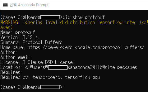 anaconda prompt나 jupyter 등을 통해 protobuf를 최신으로 업데이트