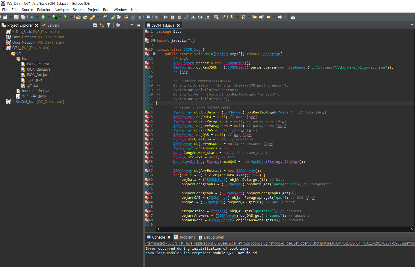 빌드 경로의 라이브러리 설정이 잘못되었다.